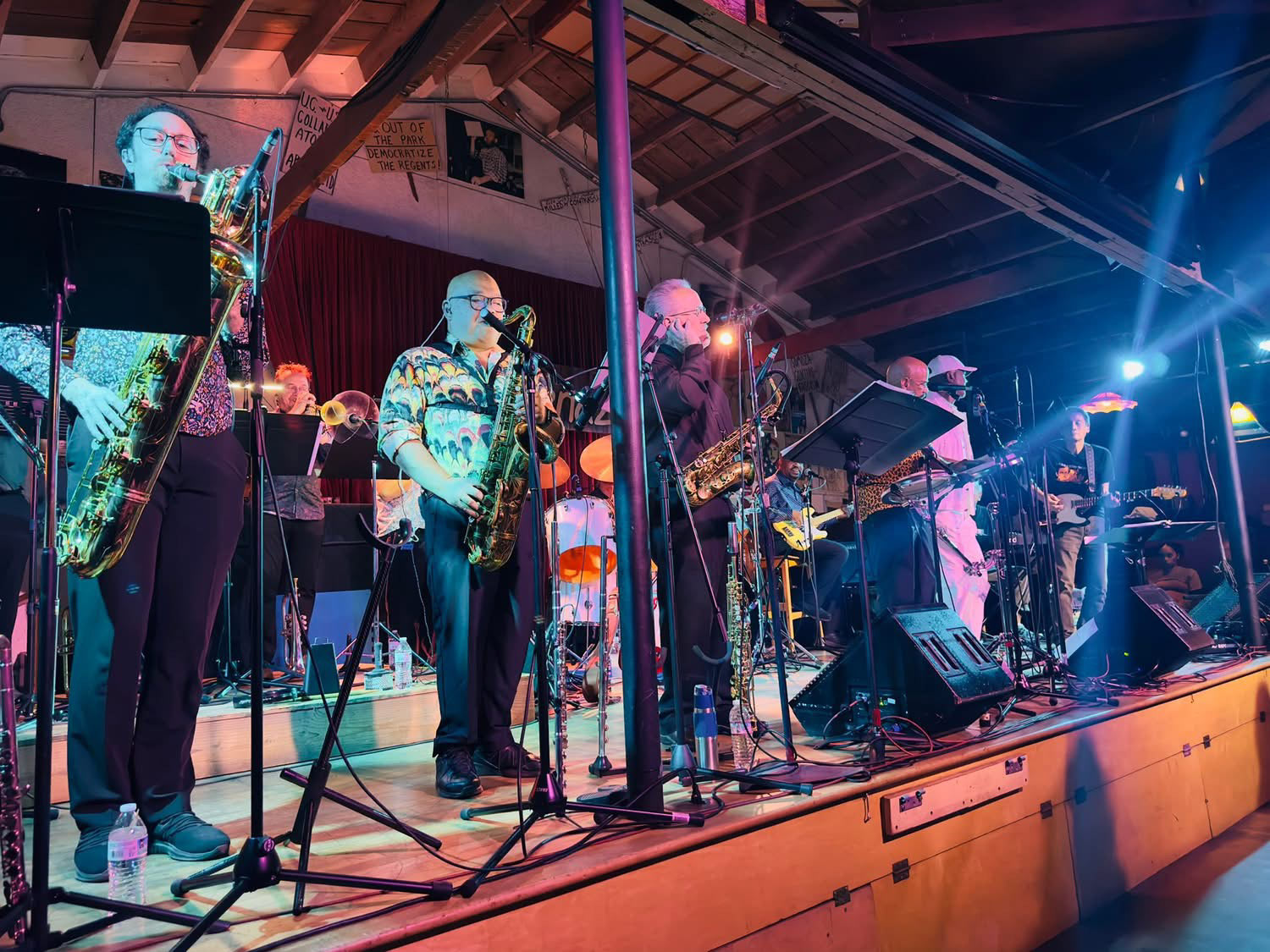 Assisted the house engineer for sound setup and check for Silk and Soul at Ashkenaz in Berkeley, August 2025. Did mic and wireless monitor setup, but also played in the band!